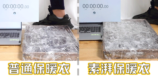 普通保暖衣包住的热水温度降到39℃;而用素湃包住的热水温度才降到47℃。