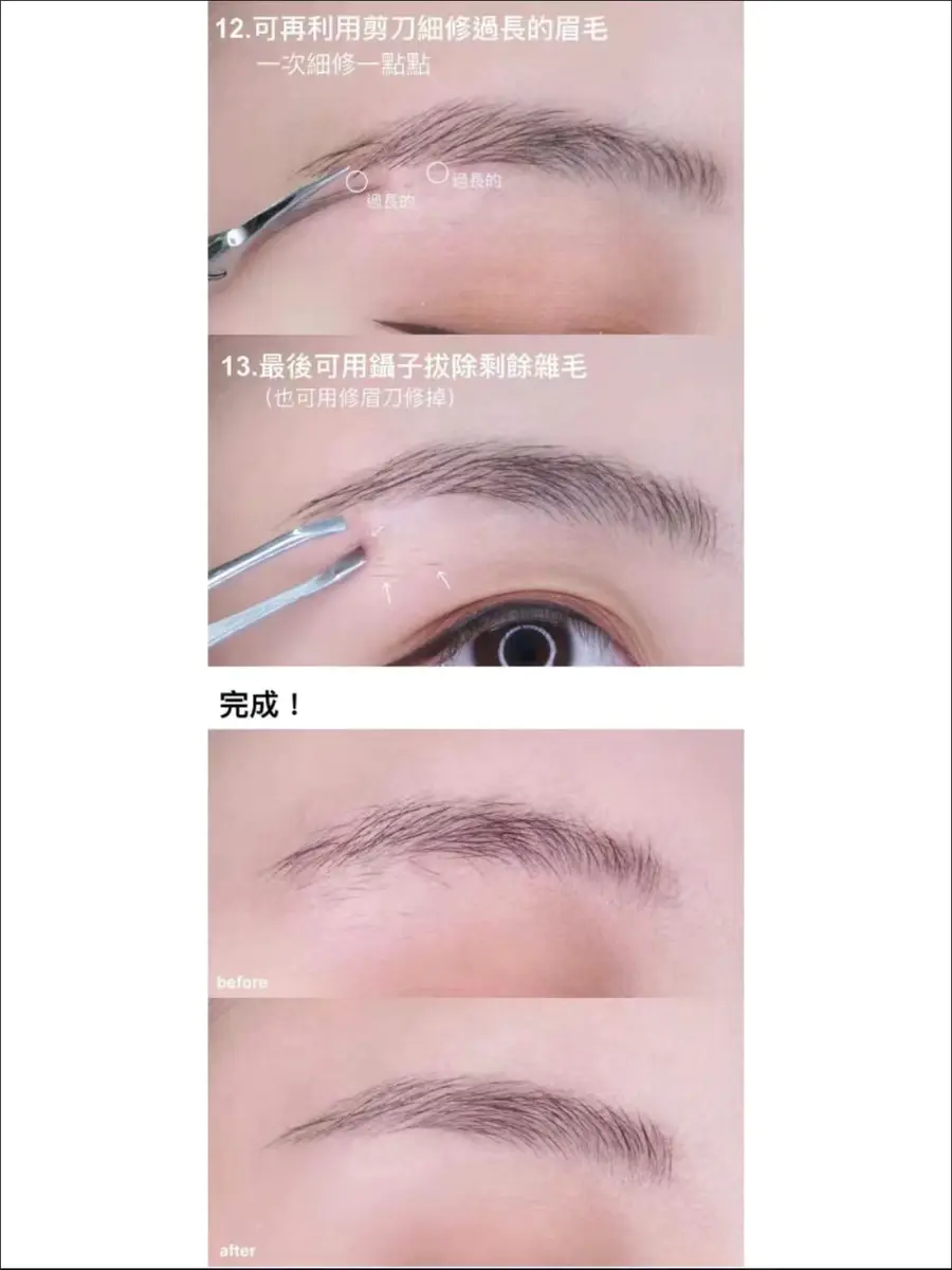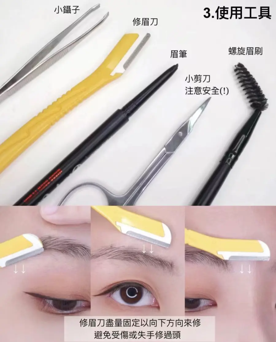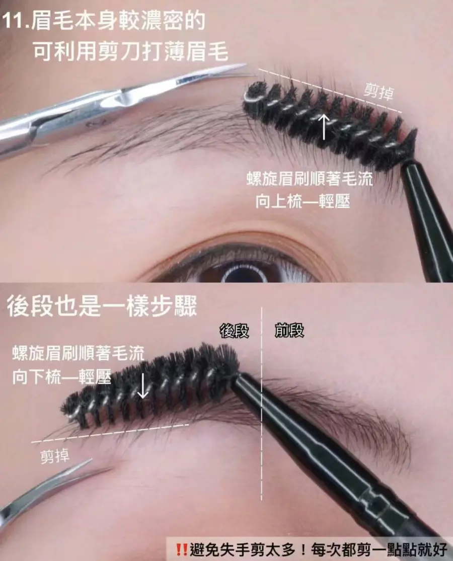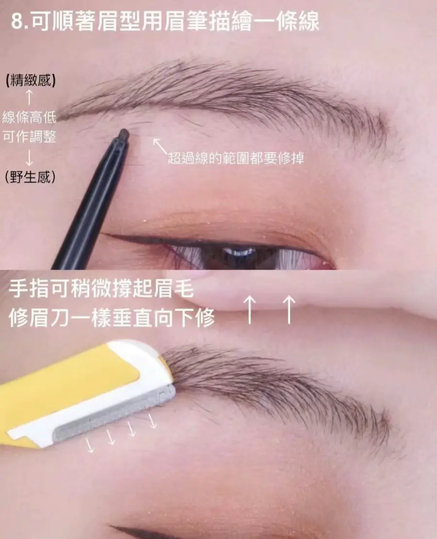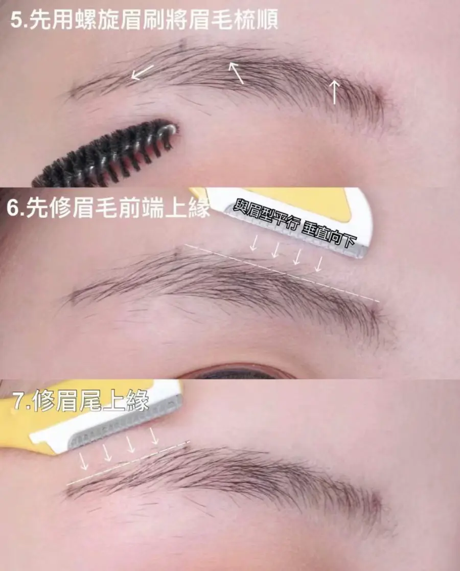 修眉刀我建议垂直往下(与线条平行)的方向去修