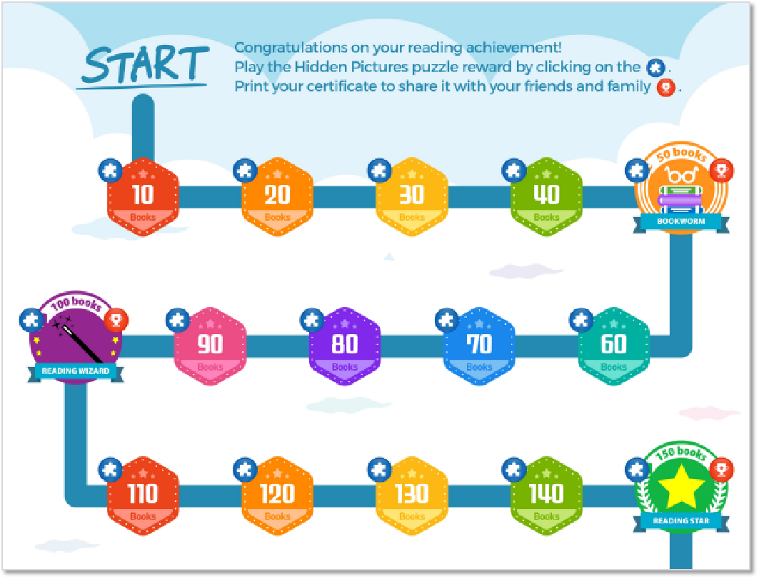 孩子每读完50本书,即可获得阅读奖励证书