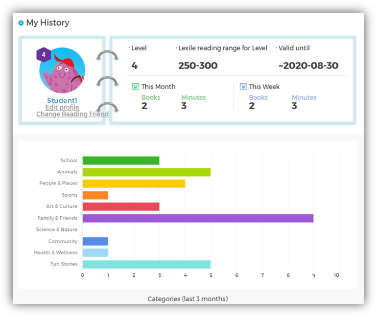 2700本可在线阅读的英文原版电子书 Lexile难度从BR到1500L左右;分为30个级别 涵盖各种主题的虚构(fiction)和非虚构(nonfiction)读物 全部配有音频,在阅读后配有阅读理解题 服务器在国内,访问流畅 电脑、手机、平板都可登陆,在线、离线均可使用 提供详细的阅读报告,显示孩子的阅读水平进阶过程 免费蓝思测试