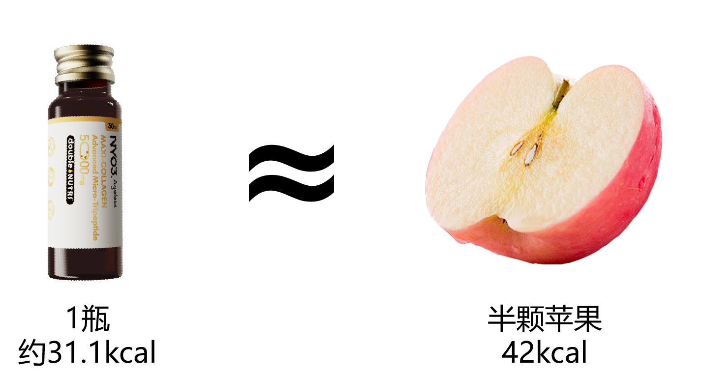 每瓶热量只有约31.1kcal,每瓶不到半颗苹果的热量