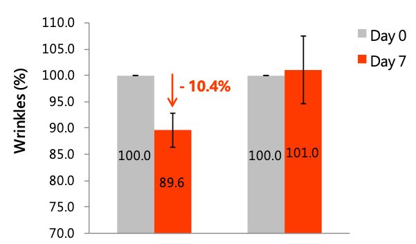 连续饮用NYO3胶原三肽7天后,可降低皮肤皱纹10.4%,抗皱功效优于一般胶原