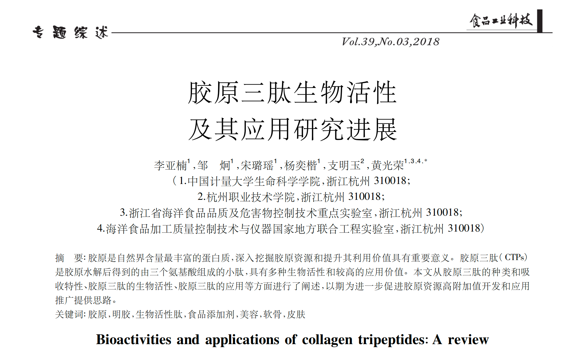 其中,胶原蛋白三肽(CTP)作为优秀的胶原蛋白肽“选手”,凭借低分子量和优异的水溶性,以及更易被人体吸收消化、更好地补充人体所需胶原蛋白的优势,成功站上行业风口,获得众多消费者的青睐。