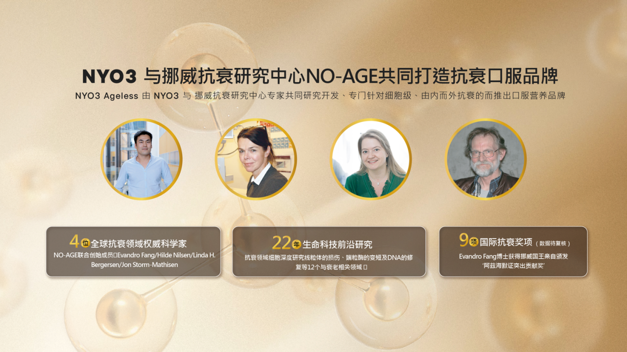 NYO3与挪威抗衰研究中心NO-AGE共同打造抗衰口服品牌,新品【小金饮】应运而生。