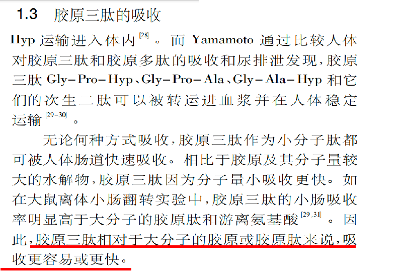 但是,如今已经有大量实验证明,胶原蛋白在皮肤中的吸收与其氨基酸序列组成密切相关。科研人员试图通过不断将胶原蛋白水解至氨基酸的结构来提高其在人体中的吸收率,“胶原蛋白肽”应运而生。