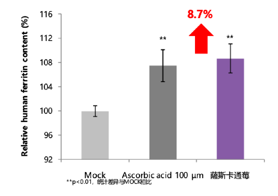 肠道铁吸收是将体内铁水平维持在最佳生理范围内的关键过程。当身体缺乏铁(或在经期)时,容易造成贫血而导致脸色惨白,因此,萨斯卡通莓可促进铁质的吸收,可以增进气色红润。