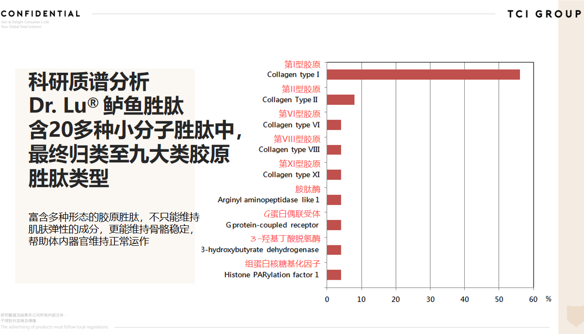 科研质谱分析Dr. Lu® 鲈鱼胜肽含20多种小分子胜肽中最终归类至9大类胶原胜肽类型