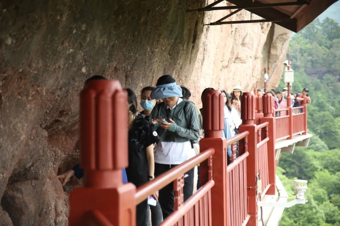 麦积山窟龛绝大多数开凿在高20-80米的悬崖峭壁上