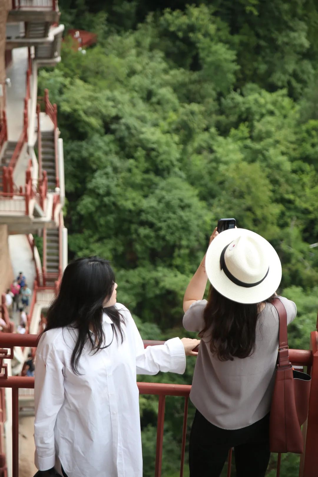 洞窟之间依靠悬空栈道相连