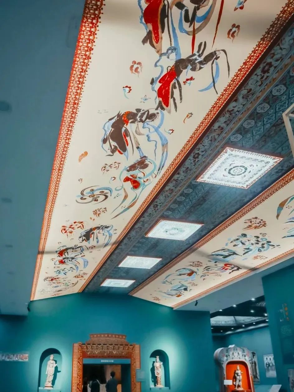 陈列的展品包括以高保真数字技术1:1复制的莫高窟最具价值的4个洞窟(如220窟、254窟、3窟等)和46幅精美的敦煌石窟壁画(61窟五台山图、榆林窟3号窟的文殊变、普贤变,九色鹿故事和舍身饲虎故事画等)。还有分层壁画立体再现、3D打印佛像雕塑、敦煌雕塑三维影像。馆内设有不同主题的展览,让观众深入了解敦煌文化的魅力,感受历史的厚重和文明的伟大。