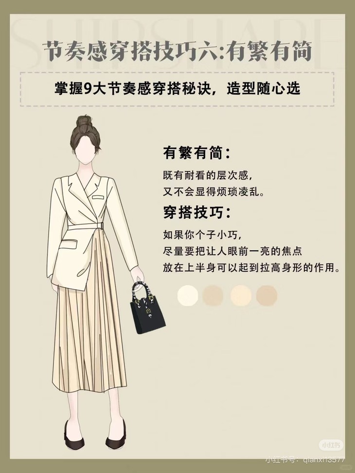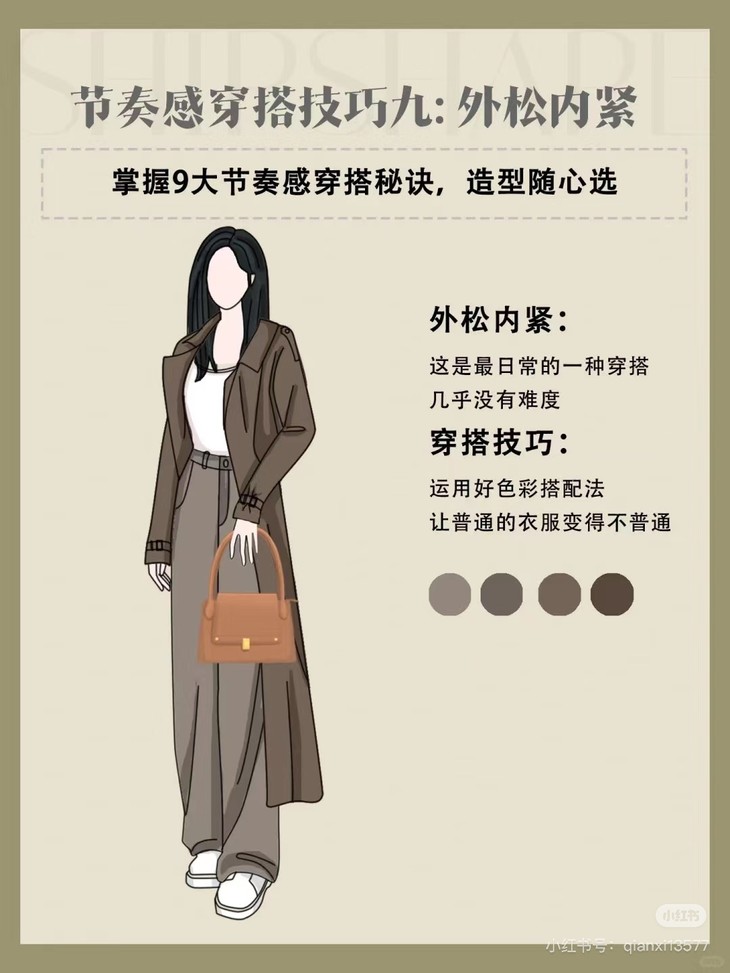节奏感可能是大多数人从未听说过的术语但它是衣服搭配的决定性因素之一,节奏感是指将服装之间的张力和动态之间的比例以及比重保持相互平衡! 那么,如何在穿搭中创造出完美的节奏感呢?今天给大家分享9种节奏感穿搭技巧~