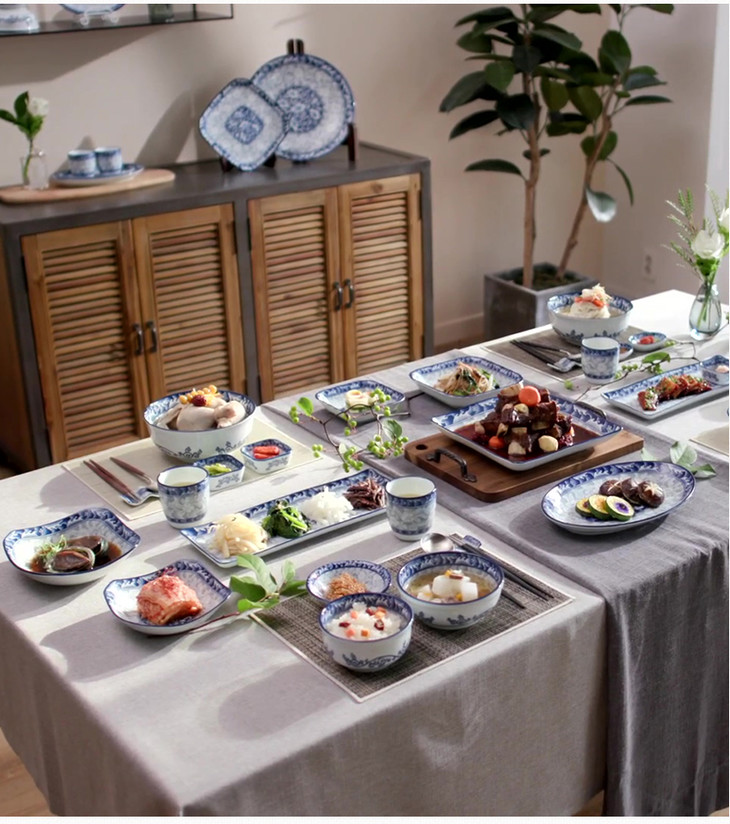 和蓝系列是日本美浓烧的代表作品,其中的金属含量远低于日本国家标准,餐具内外花朵呼应,一杆一华,相得益彰~