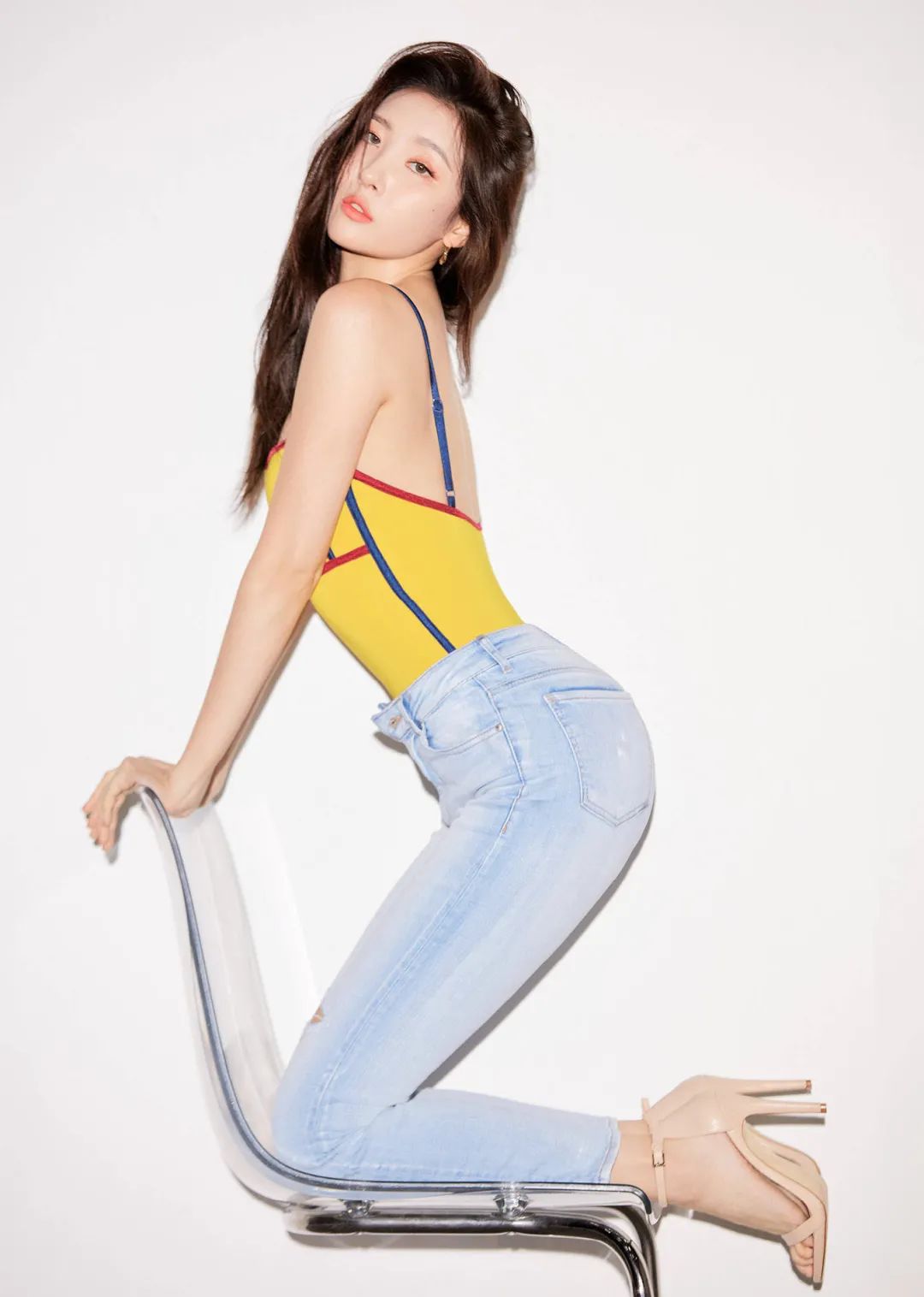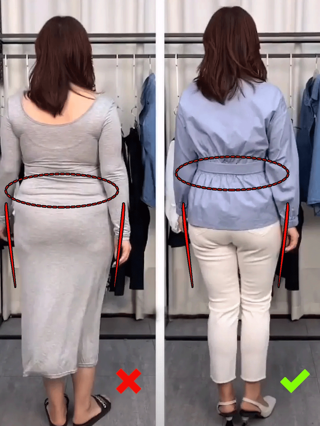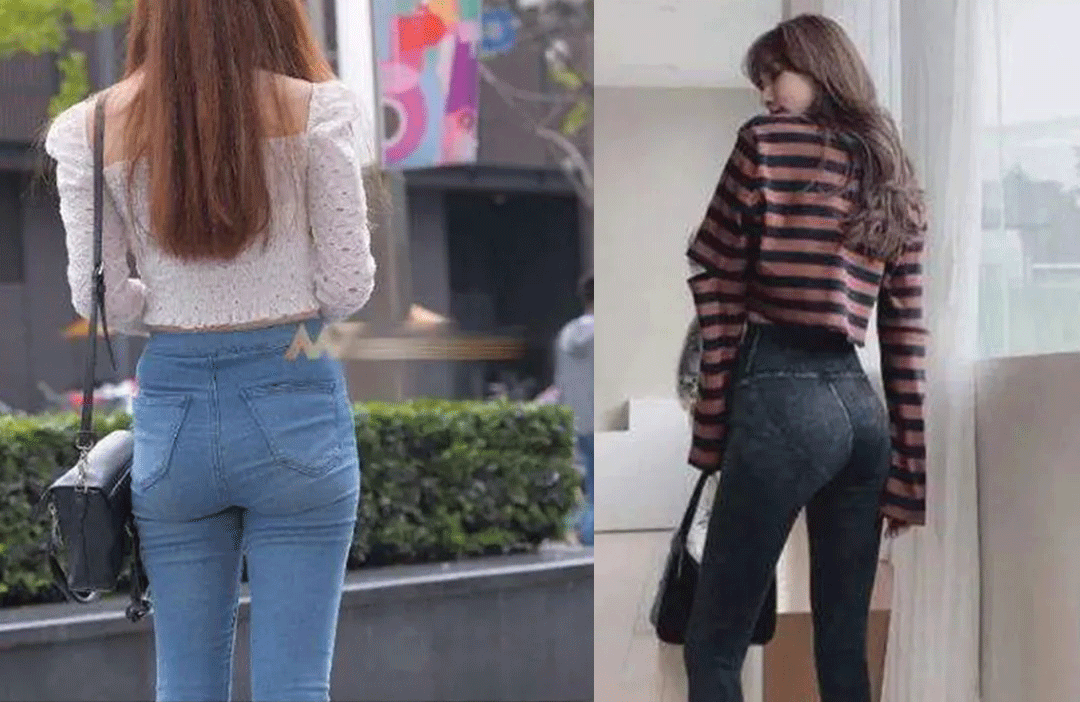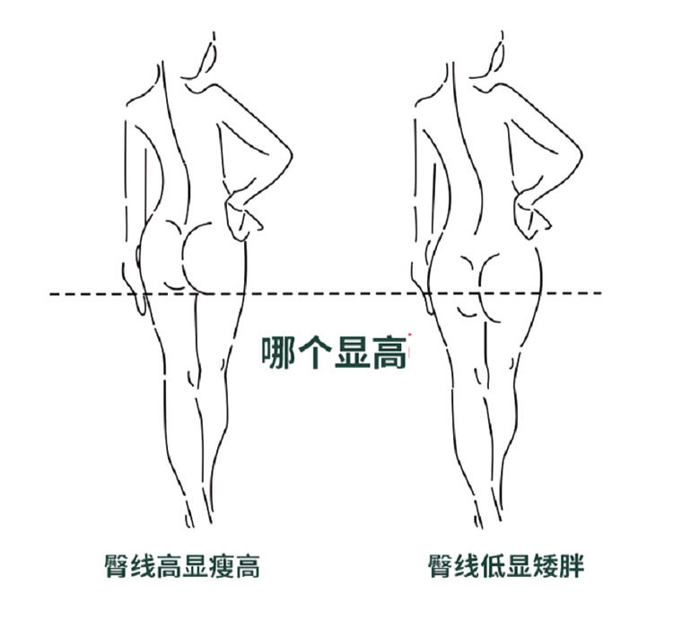 同样的腰线位置,翘臀就是比塌屁股看着显高显瘦↓