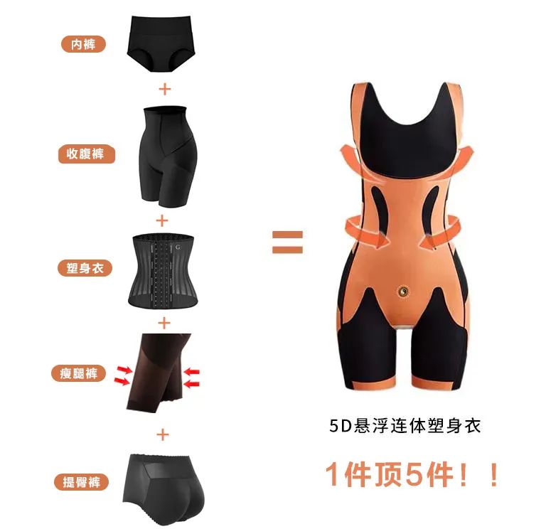 有1件5D悬浮连体塑身衣=同时拥有内裤+塑身衣+收腹裤+瘦腿裤+美臀裤!