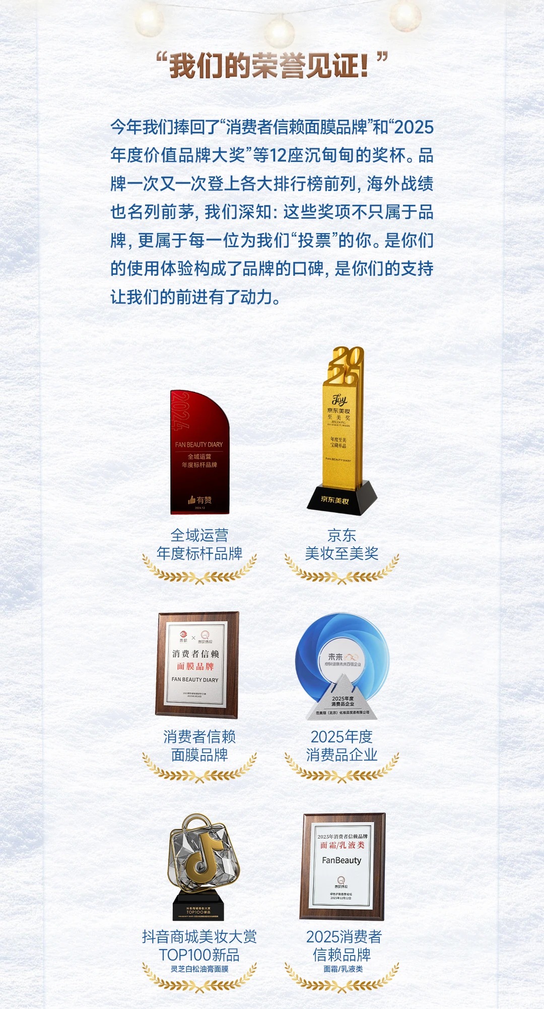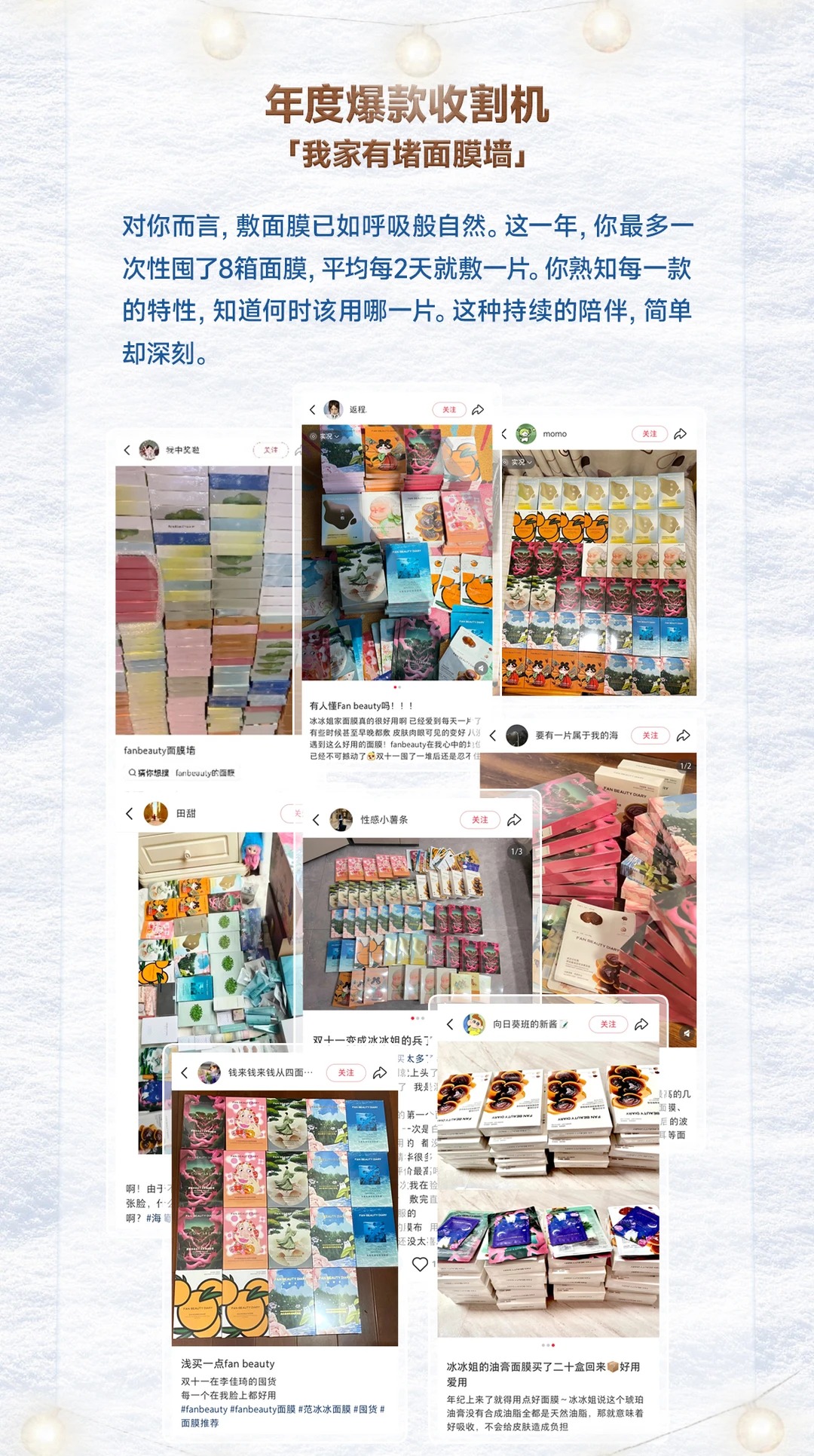 亲爱的BeautyFans Fan Beauty Diary的2025年度美力总结已为你备好这一年,你是哪种“美力人设”? 年度新品种草机:VC大桔、油膏面膜…每次上新都冲在第一线! 年度爆款收割机:家里有面膜墙,每2天就敷一片...... 年度宝藏挖掘机:了解自己的肌肤,像搭配食谱一样搭配产品!