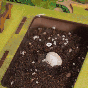 根据说明书的要求,我们把含羞草的种子均匀地撒在营养土表面,适当浇水后将种植槽镶嵌在了小屋的旁边。瞧,迷你花园建好了,记得要经常给它晒太阳哦。期待一个礼拜以后小芽的萌发吧!