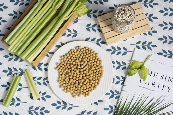 先将黄豆、薏米洗净备用,西芹洗净切段;