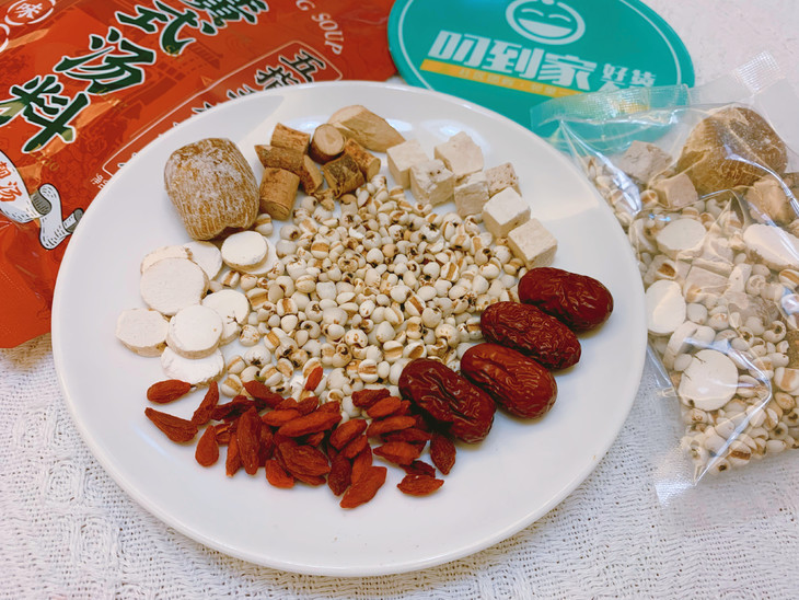 配料:五指毛桃、薏米、蜜枣、茯苓、灰枣、淮山、枸杞