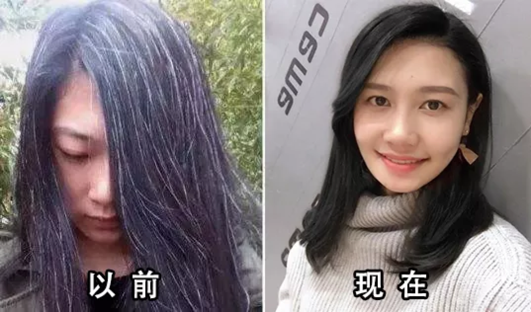 你看这两张对比图,妈妈年轻了10岁!两个月后还是乌黑发亮!