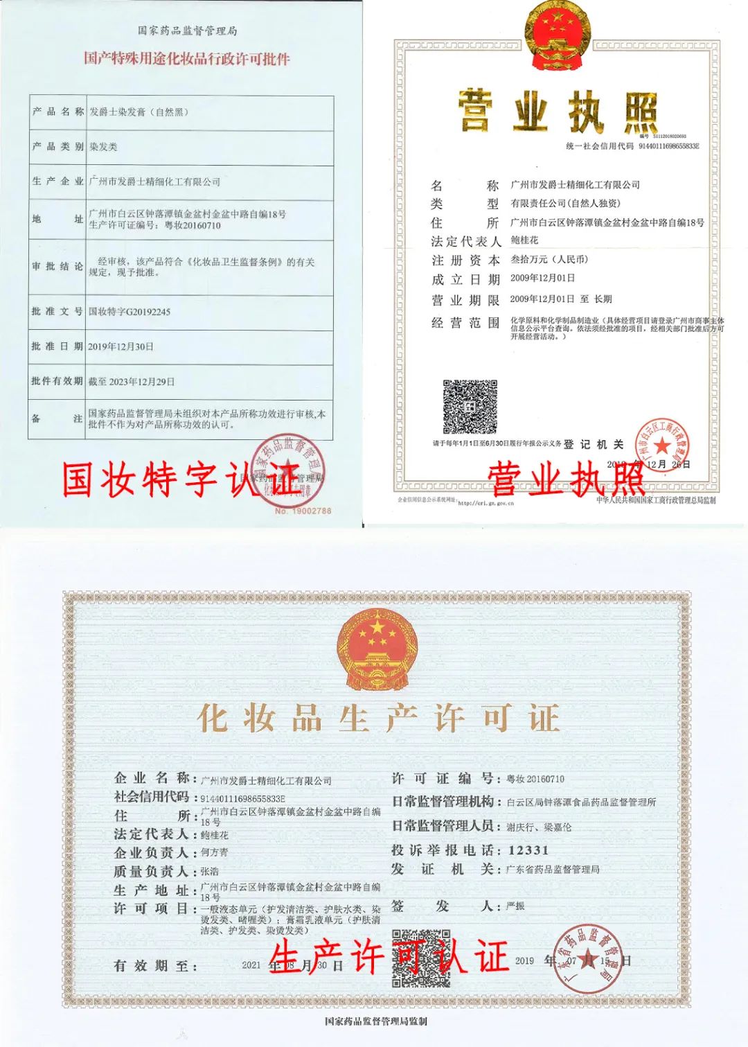 生产许可证、商标注册、营业执照等也一应俱全!