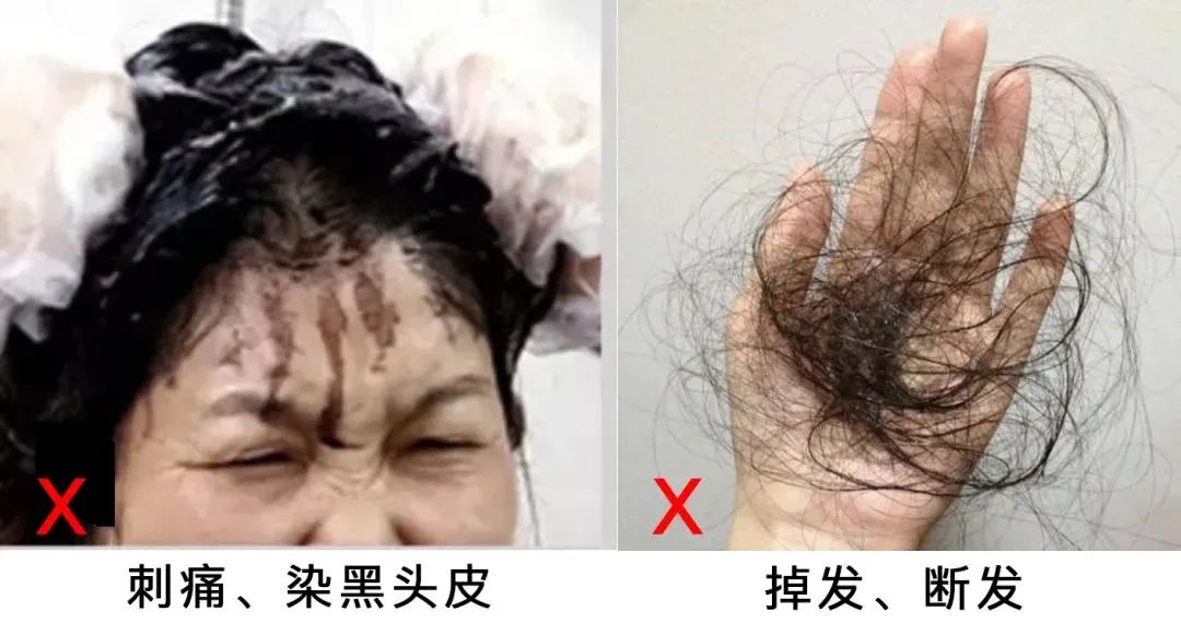 为了达到黑发效果,会添加不少铅汞重金属等有毒物质!染黑头皮、头皮过敏刺痛,甚至脱发!