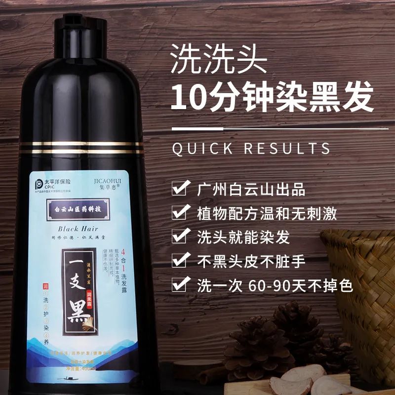 而广药白云山一洗黑,成分安全、效果靠谱!洗洗头10分钟黑发,不黑头皮不脏手,固色60-90天!