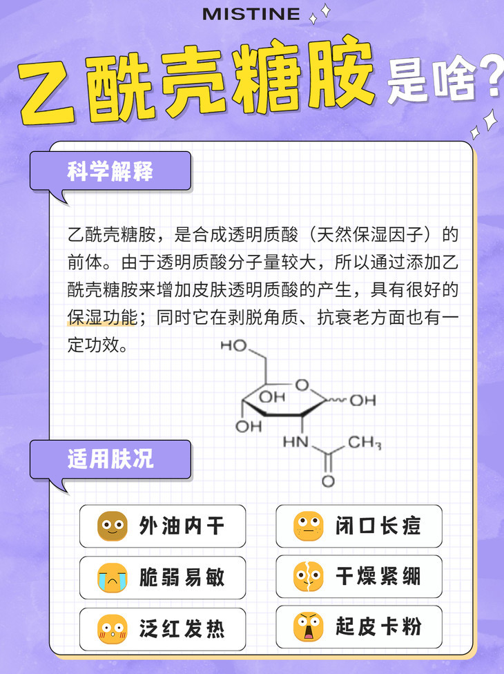 像是泛醇、乙酰壳糖胺、透明质酸钠、都是保湿补水、修复维稳的好帮手!👍