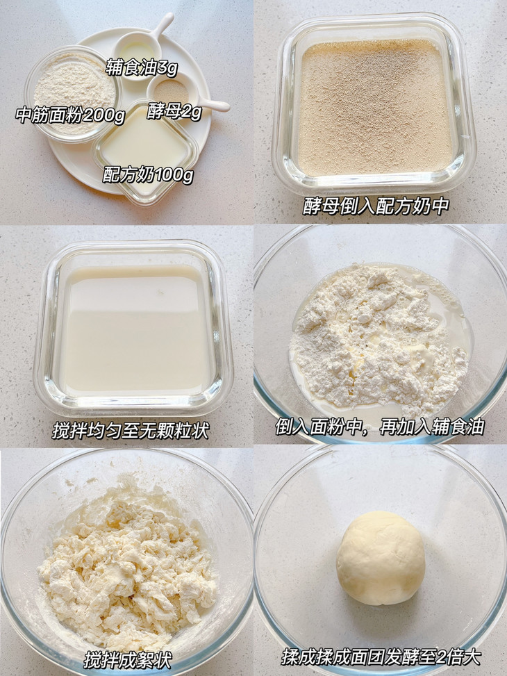 1 、配方奶➕酵母搅拌均匀至无颗粒状