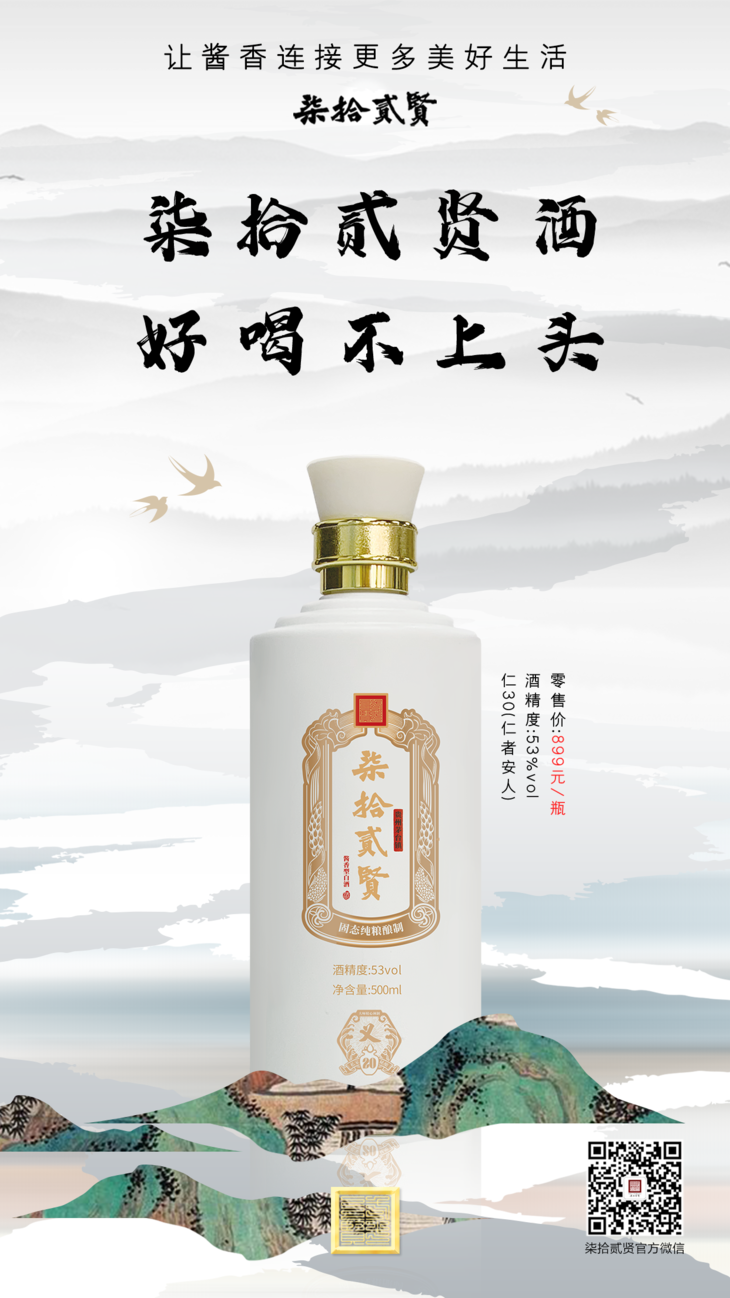 古法酿造的柒拾贰贤酒产品类型还是蛮丰富的,有贤者五常系列,仁30、义20、礼15、智12和信10.还有贤士六艺酒。不管是哪个系列,从整体上看,柒拾贰贤酒酱香味突出,回味比较长,空杯留香,值得品尝。