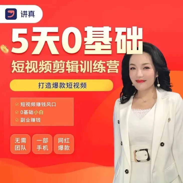 今天给大家推荐讲真「5天短视频剪辑训练营」想通过短视频赚钱的小伙伴,可千万不要错过了!
