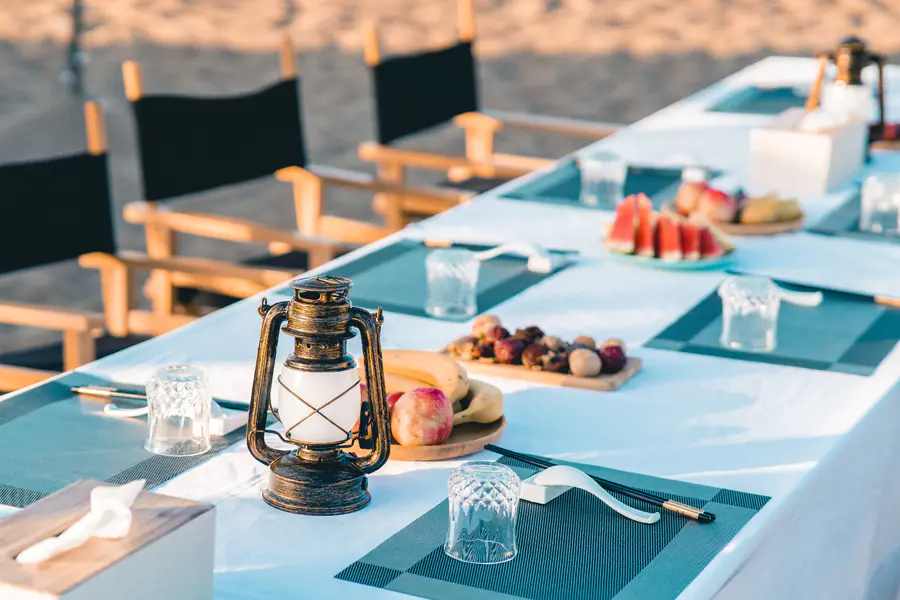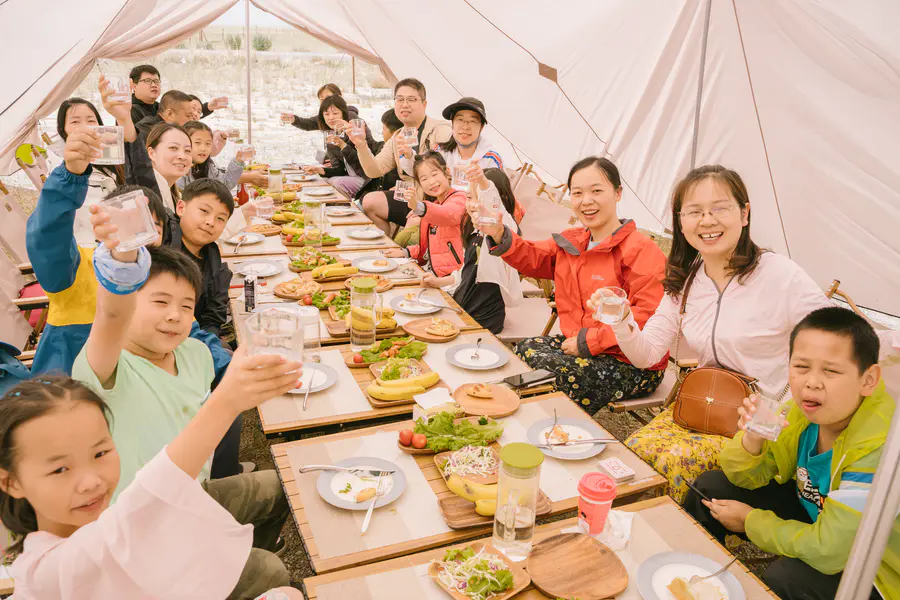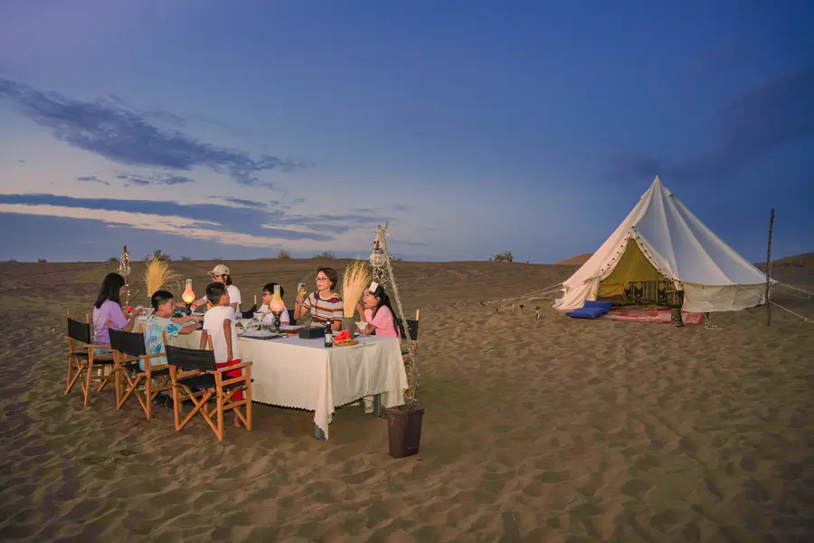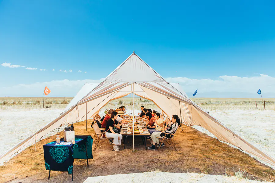 【午餐(含)】在青海杳无人烟的大漠戈壁中,为大家安排一次轻松惬意的大漠露天午餐。在我们的戈壁营地里,我们会花上约两个小时的时间,上一节由野孩子和专业自然教育机构联合开发的自然教育课。
