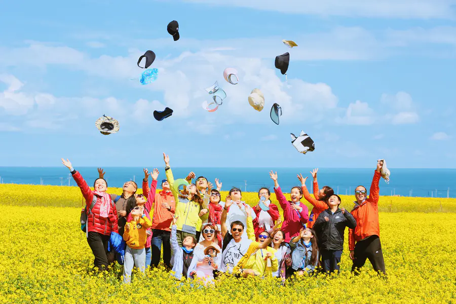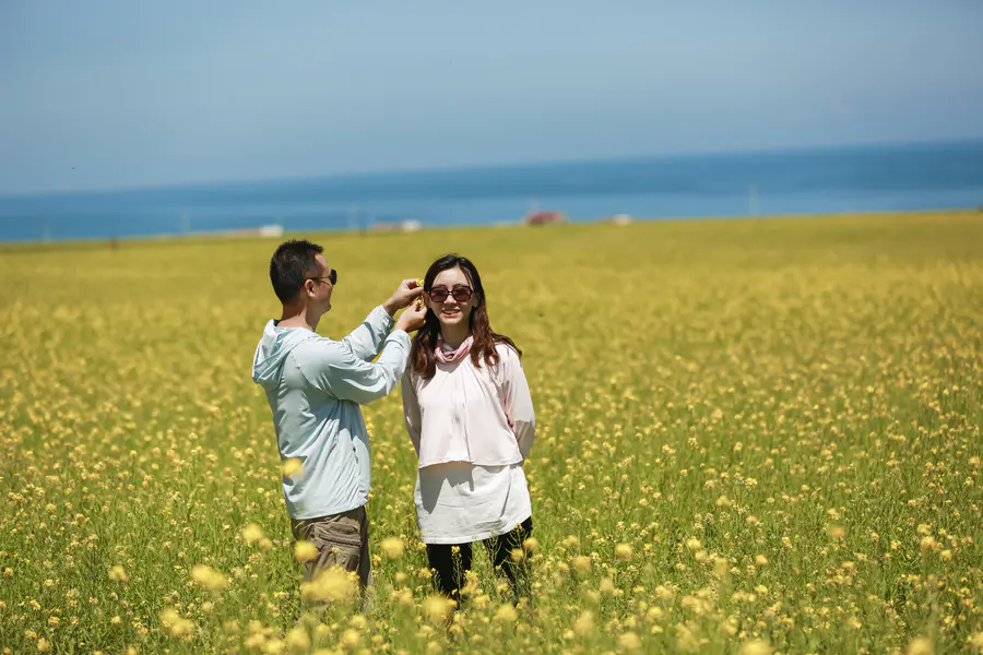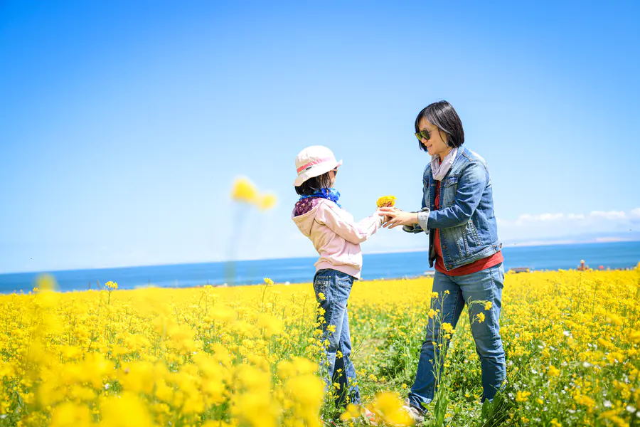 【上午】前往青海湖,夏天的青海湖边是花的海洋,黄的油菜花、紫的薰衣草、红的虞美人,映照着一望无际的蓝色湖水,摄影师在这里为每个家庭拍摄亲子旅行大片,之后返回西宁。