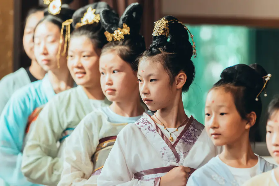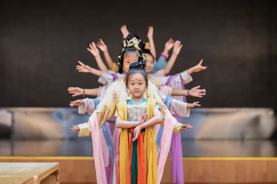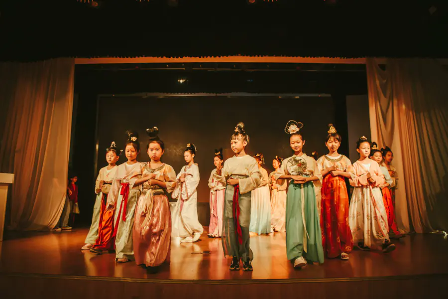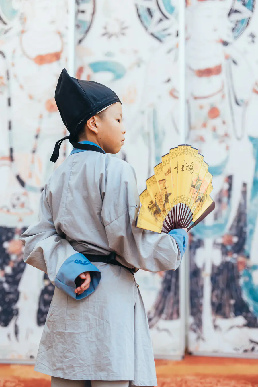 【下午】来到敦煌研究院莫高学堂,聆听敦煌研究院金牌老师的授课“莫高窟壁画中的服饰”。之后小朋友们会穿越时空,换上从莫高窟壁画上复制下来的服装,学习古代着装礼仪、古代妆容、古代女子的各种发型,给家长们做一次小型的汇报表演。