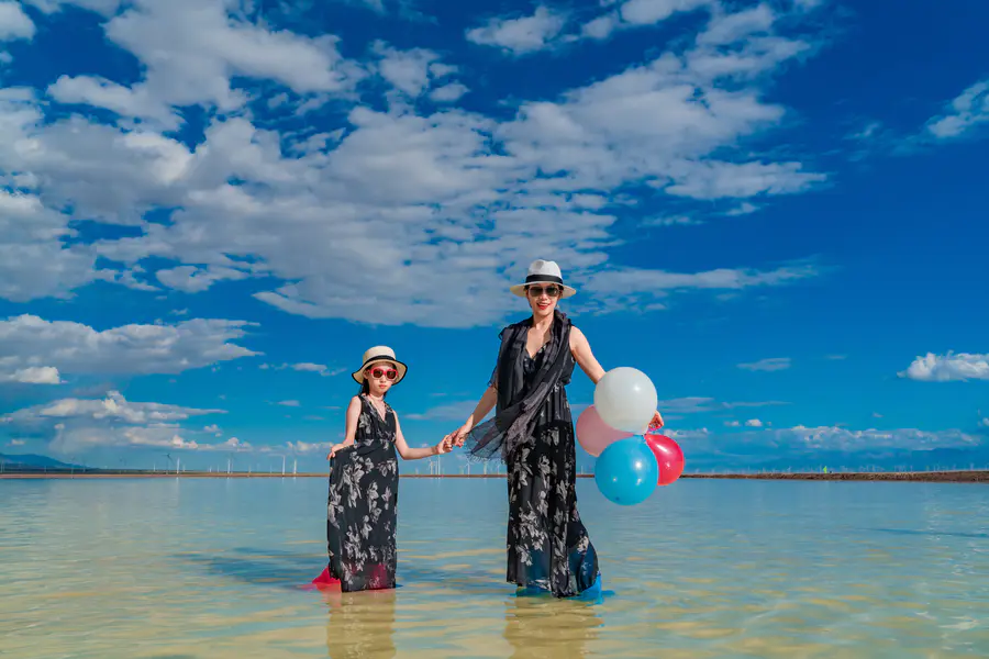 【下午】来到被誉为中国版“天空之镜”茶卡盐湖游玩,换上漂亮的衣服,走进雪白的盐沼,在天空和水面的映衬下,让摄影师为大家拍出仙气十足的大片。