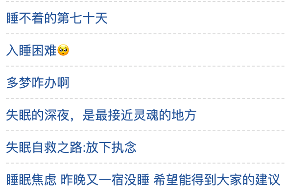 而在这个小组里出现最多的词,除了失眠就是焦虑。越想睡越焦虑,越焦虑越是睡不着,形成了一个恶性循环。