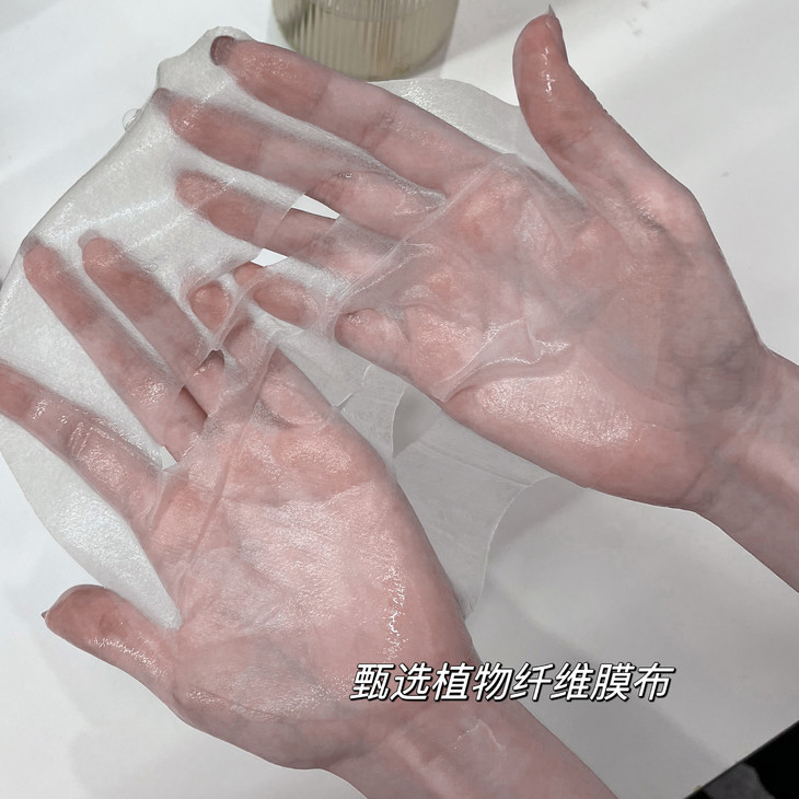 但是你看这个面膜的精华液,25ml足量精华,膜布也是近乎透明的植物纤维膜布,牢牢裹住精华液,绵软亲肤的同时,又能挂住精华液,一点点灌进肌肤里,还能不过分流失。