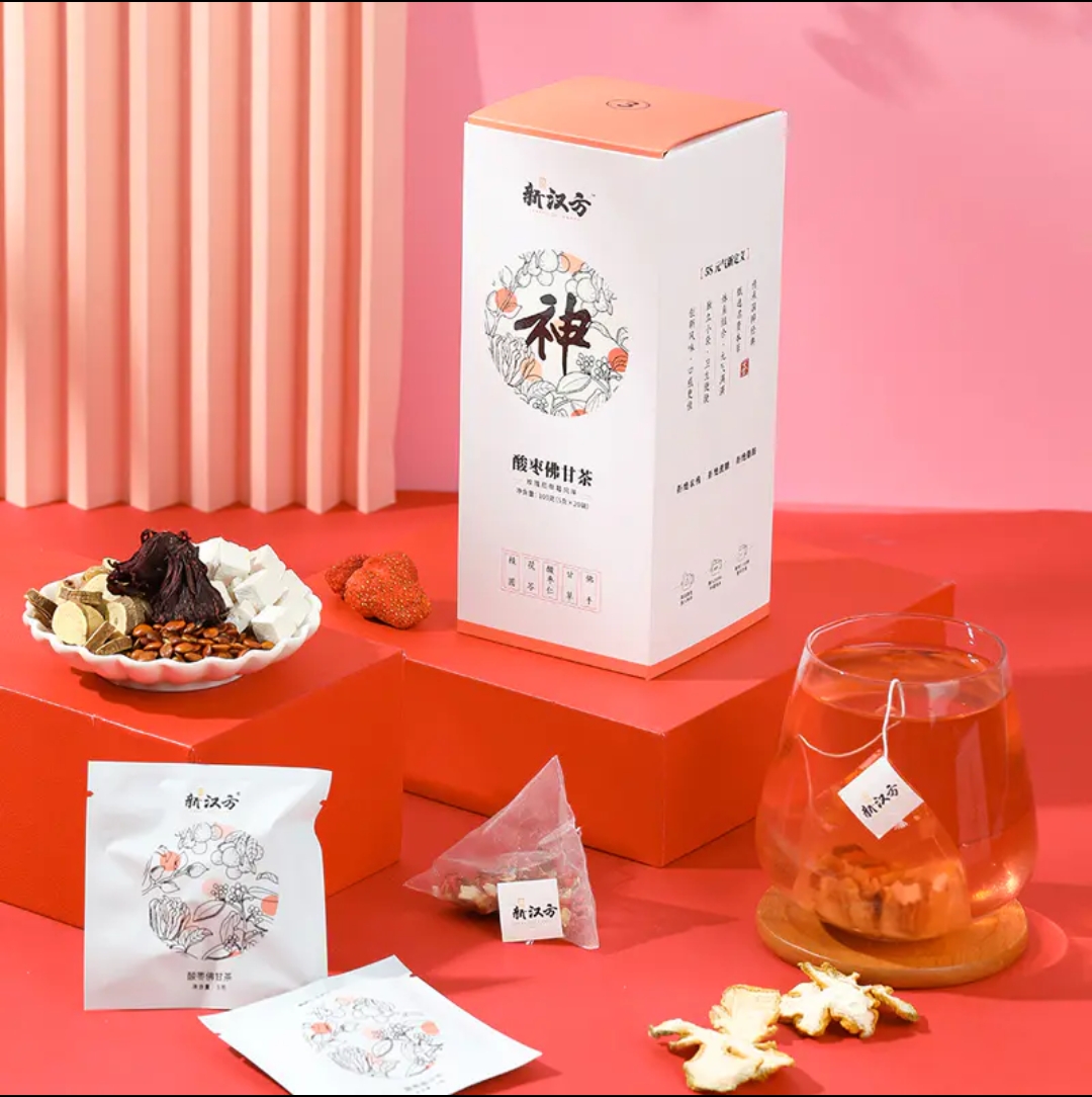 新汉方酸枣佛甘茶:甄选7味草本配方,科学配比,内含酸枣仁、茯苓、桂圆、玫瑰茄、佛手、冻干草莓粒,不含农药残留安心喝,睡好了,精神才会好,一杯甘甜,酣然入梦!