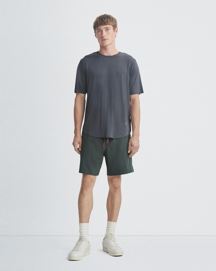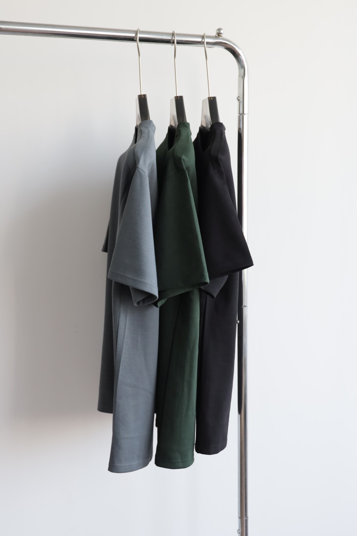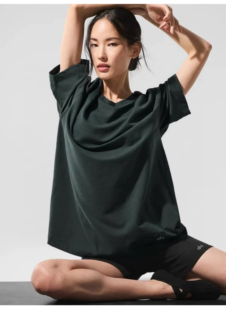极简微宽松剪裁,240克液态丝滑双面面料,垂坠抗皱,弹性足,伸展性好,丝滑,双面透气设计,可能提升散热。