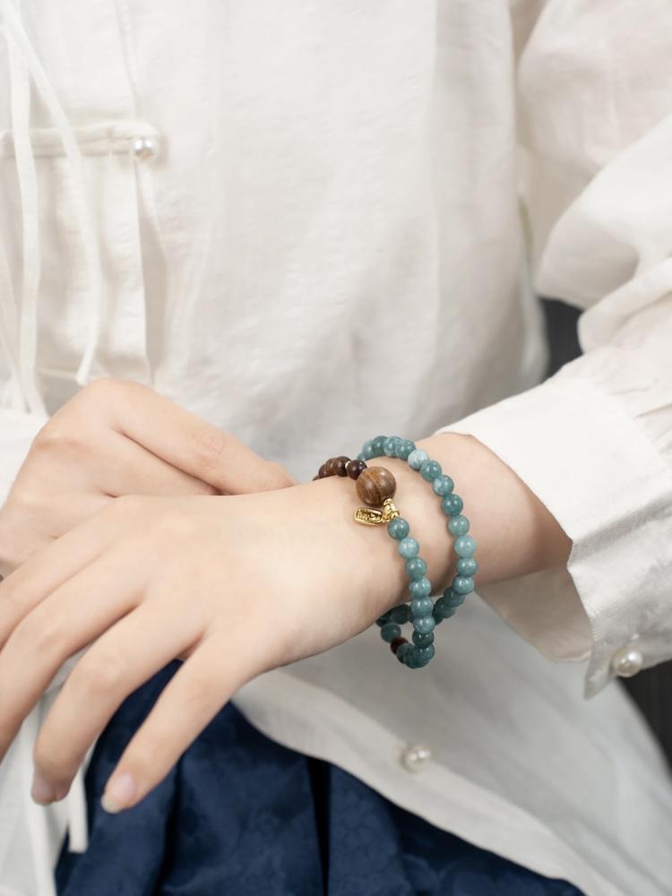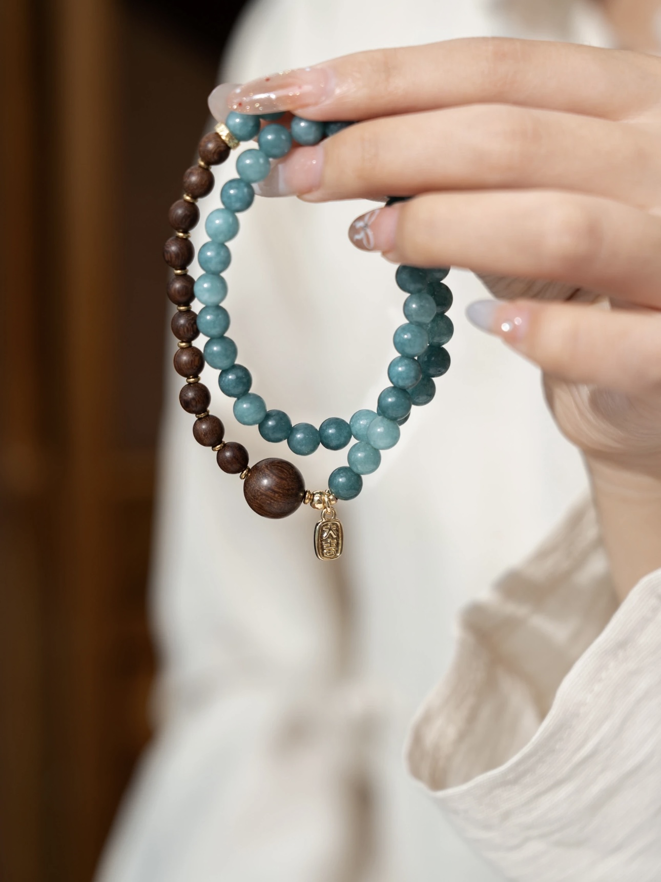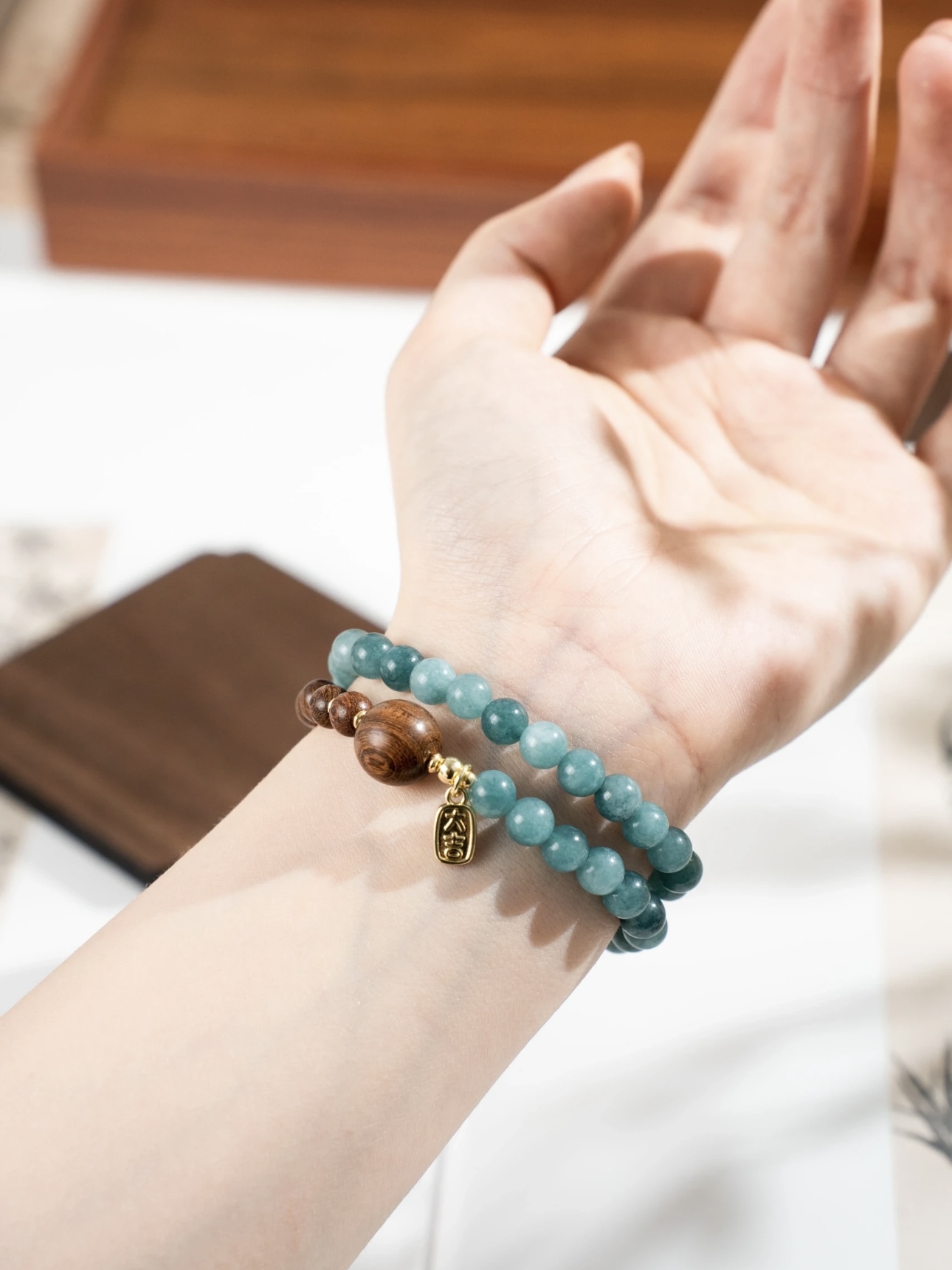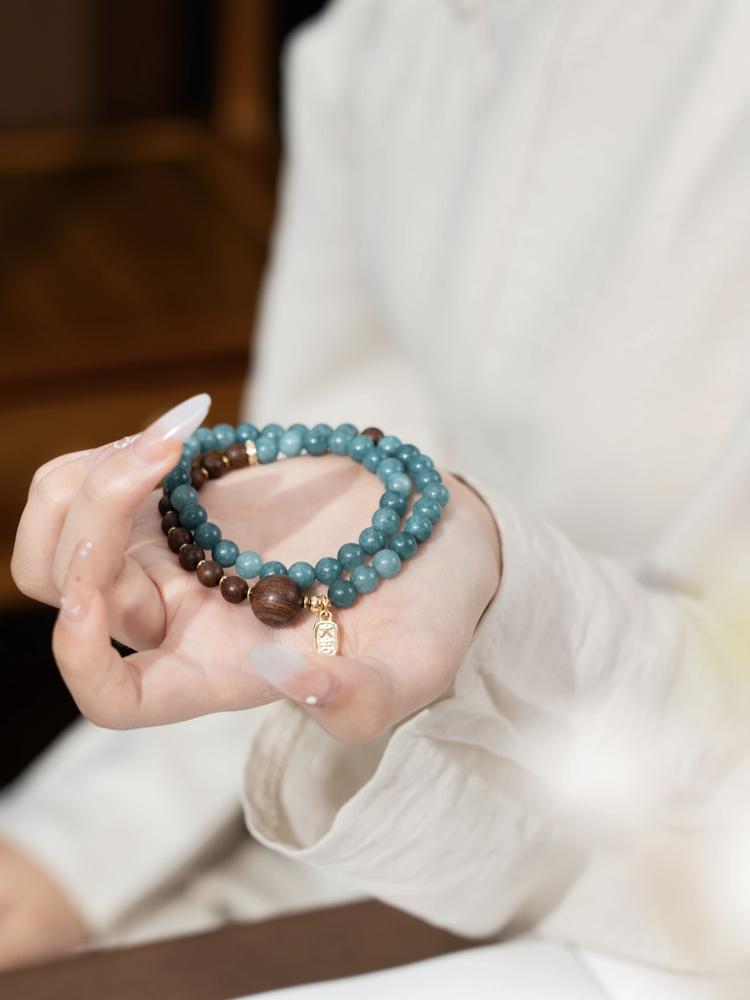 💙蓝玉髓衬得手腕白皙秀气,🪵沉香自带天然木质淡香,是一串自带疗愈香气的安神符~