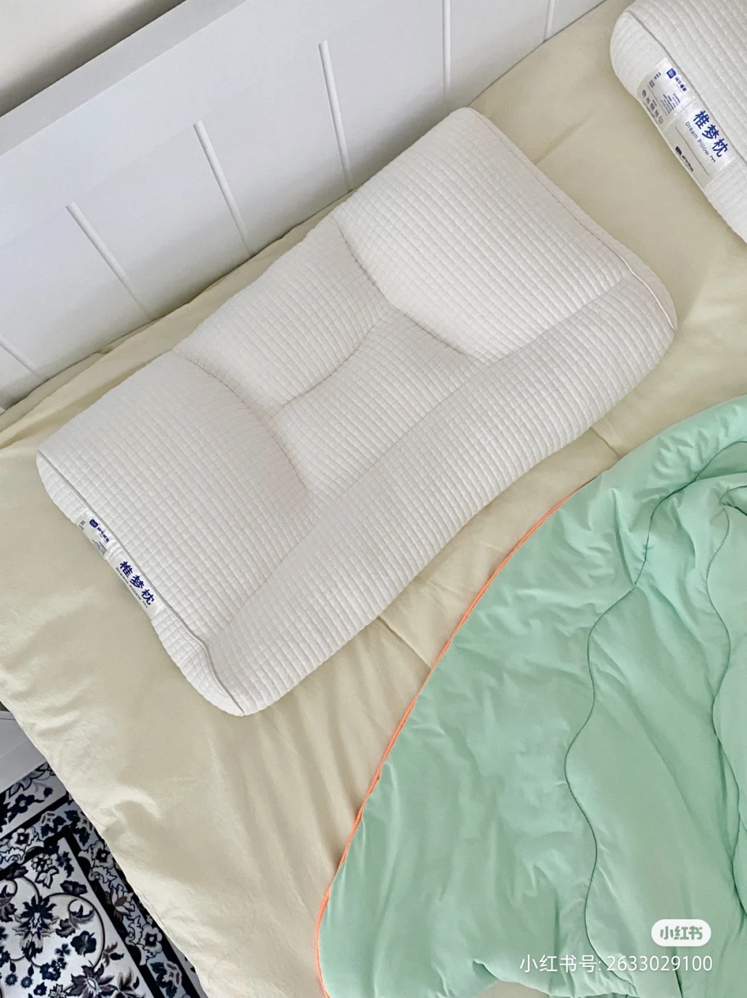 枕头我也换掉了之前用了很久的棉花枕,选了一款可以保护颈椎的枕头,这个枕头是按照人体躺下去颈部和头部分区设计的,所以我可以很明显的感受到我的脑壳和脖子都刚好可以卡在枕头的凹凸之中,就是完全被包裹住的感觉~