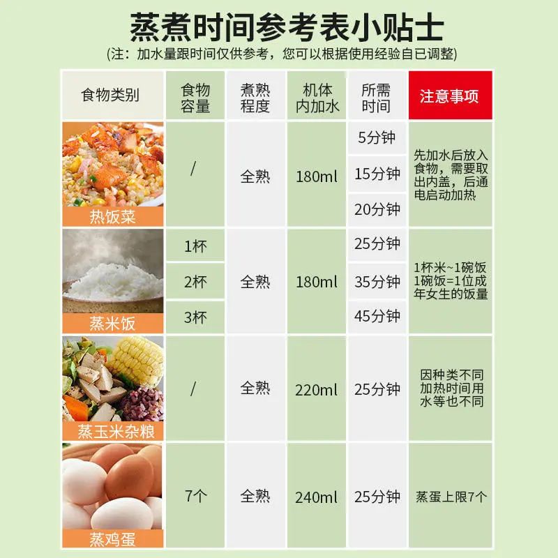 在这里小编也附上不同食材的蒸煮时间,可以参考一下喔~
