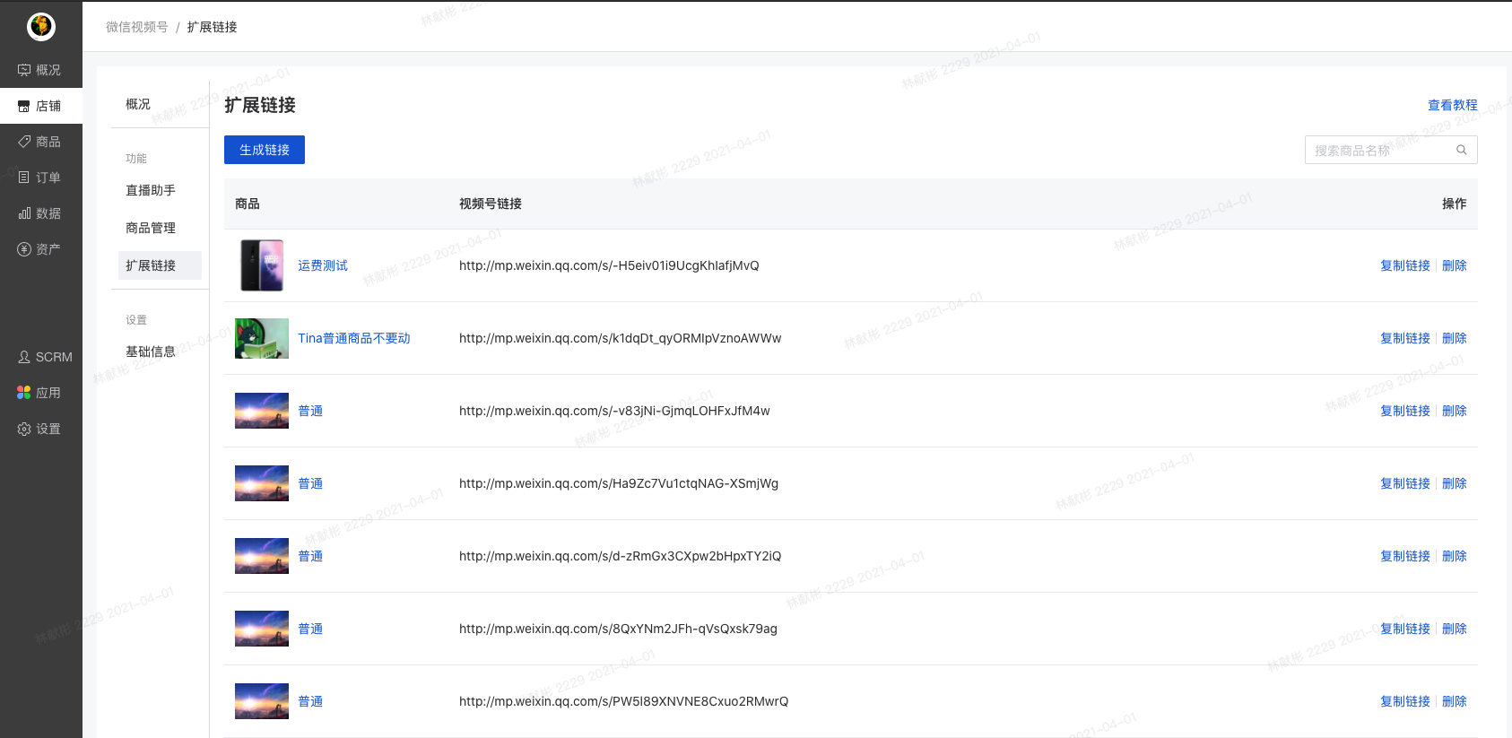2、活动列表页:点击“生成链接”即可新建。“复制链接”,可以复制已经转换好的链接。