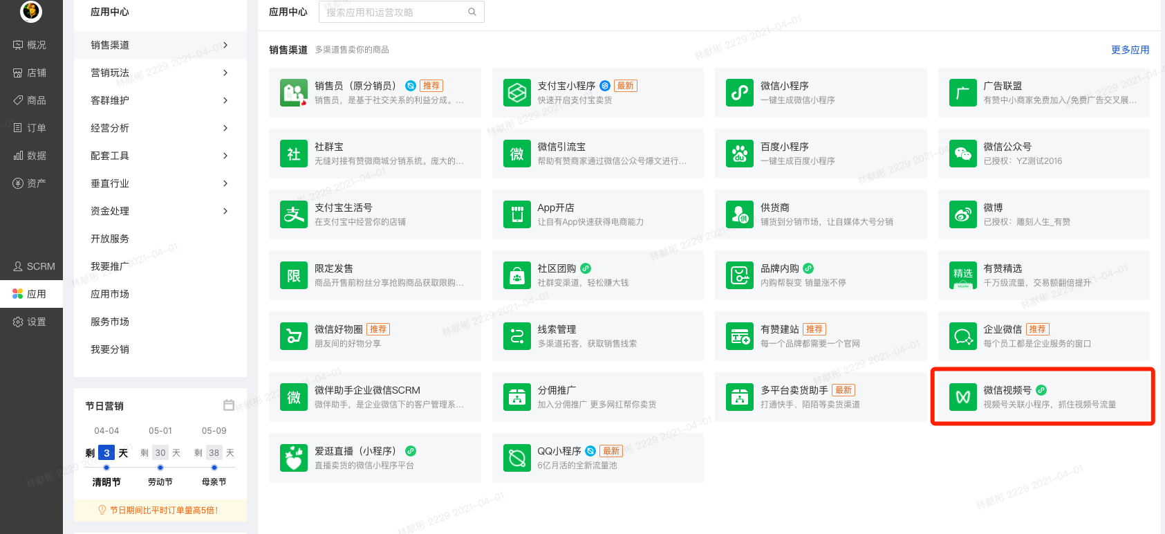 1、功能入口:PC后台—应用—销售渠道—微信视频号—扩展链接