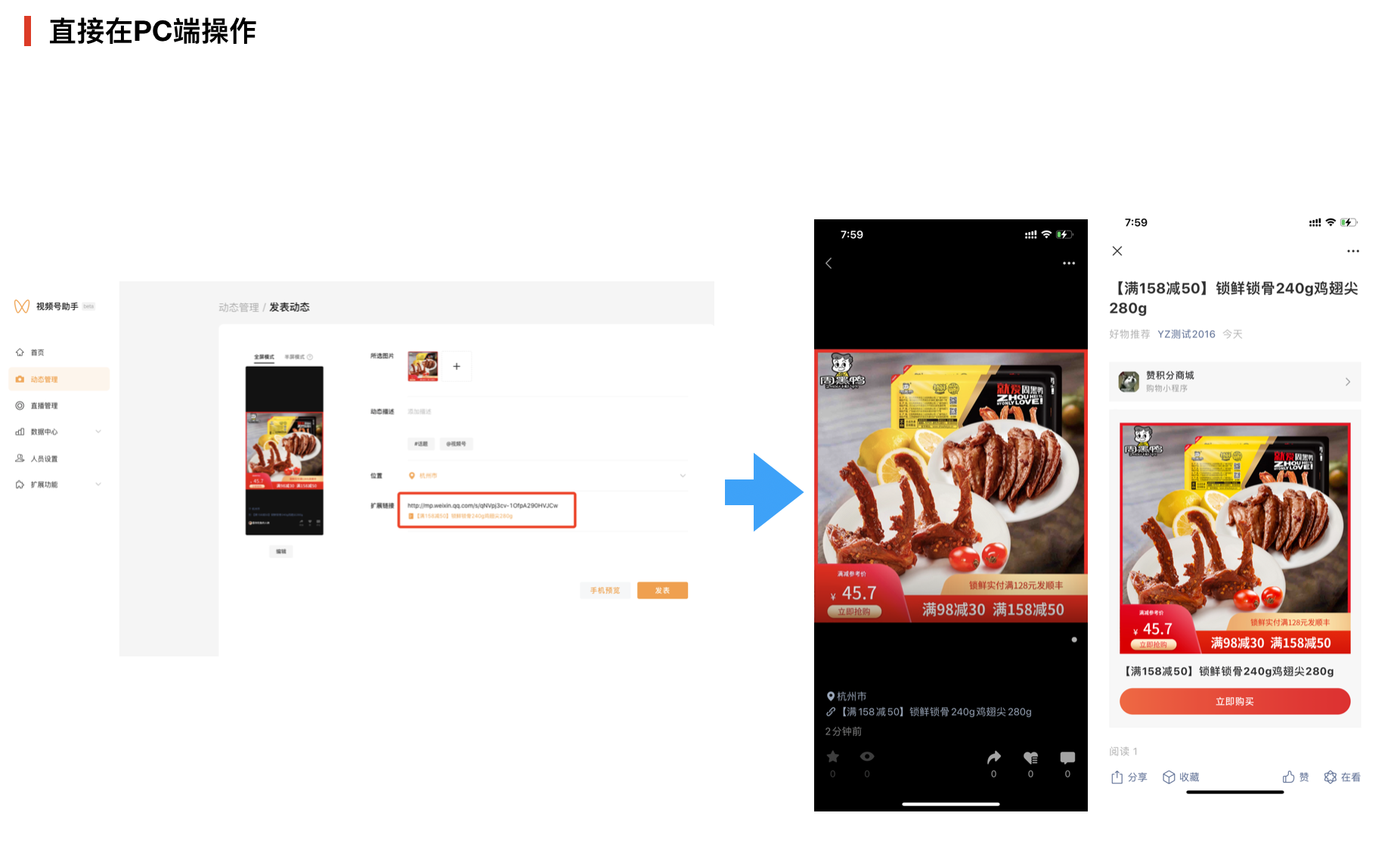 随着微信视频号的快速发展,越来越多的有赞商家开始使用视频号直播带货,且取得了不错的带货效果。为了让商家朋友们在微信视频号里获得更多的带货快乐,除了直播途径外,有赞为商家特意打造了一款“微信短视频带货小工具”,商家可以通过此工具,将商品链接转换后挂载到微信短视频,分享到粉丝群实现短视频带货。