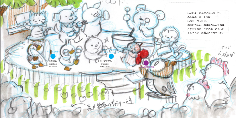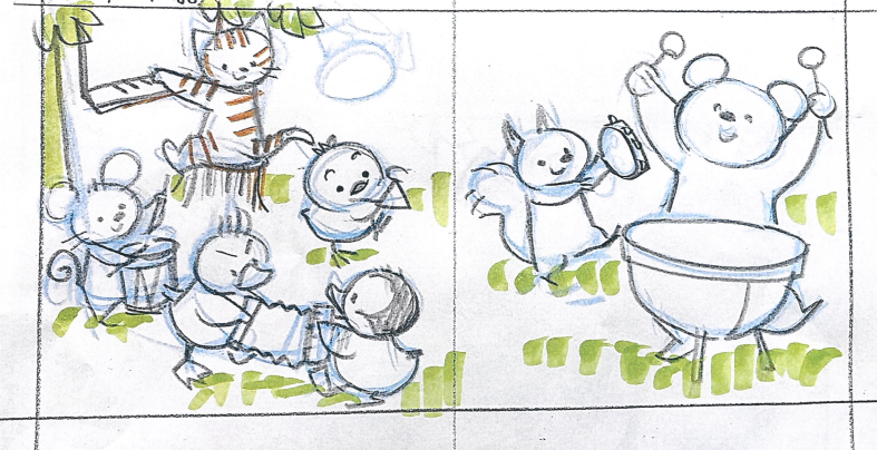 在入山智老师的画笔下,3个小鸡球球的全新故事被一点点完善,从草图,到线稿,到上色……我们很幸运地能看到其珍贵的手稿: