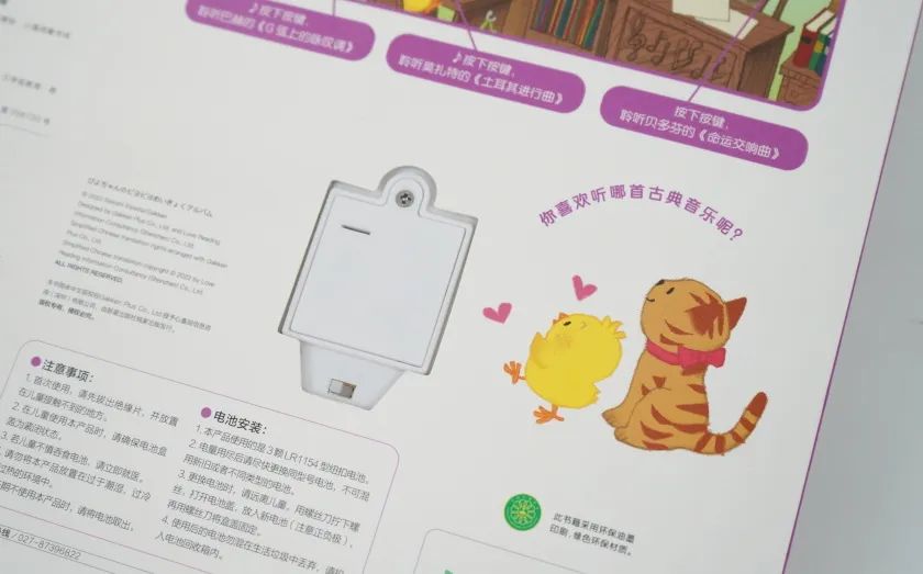 不同于部分发声书采用的“素材库”音源,书中的大自然环境音、乐器音、古典乐曲都是100%真实采样,声源纯净。