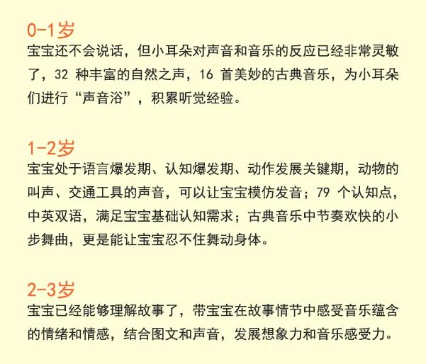 只需一套,宝宝便可以:认识和倾听各种各样的乐器、感受大自然丰富的声音、享受古典乐。