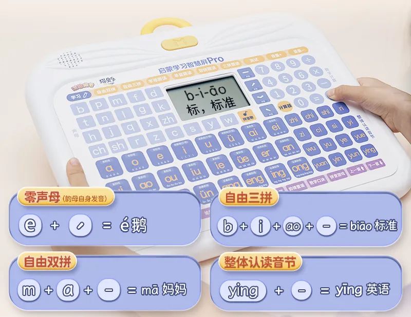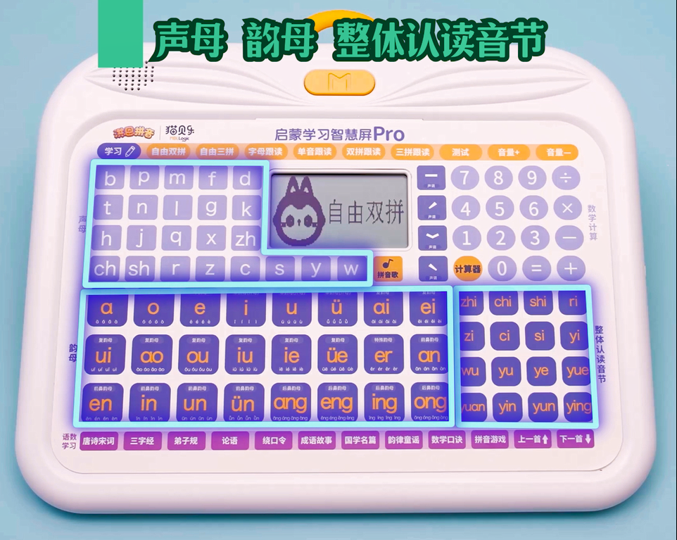 这款拼音机声母、韵母、整体认读音节分区清晰、好认,孩子非常好上手。
