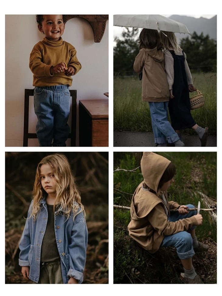 直接穿外套太热,单穿打底衫又冷,今天就给大家推荐几款超值的秋款牛仔系列!高密度的优质面料,衣服更耐摩擦,面料柔软,怎么折都不容易皱,不管娃穿上怎么疯跑活动,都能保持平整垂坠,穿一整年都跟新的一样。