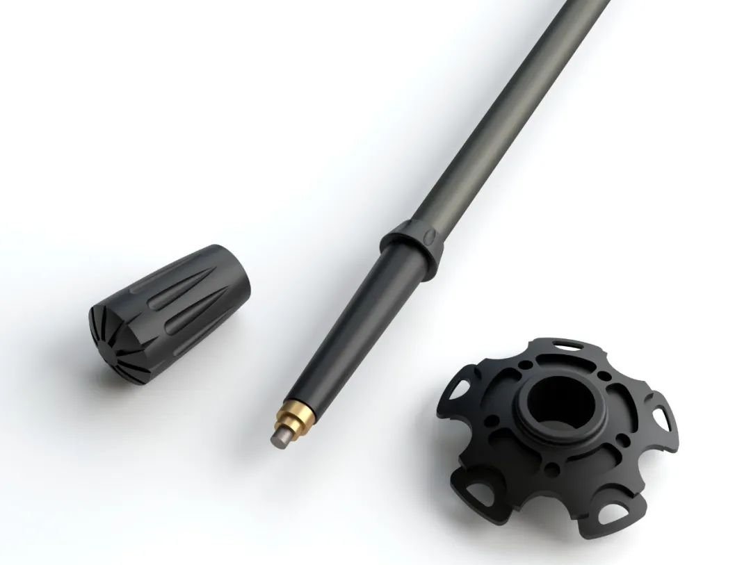 杖尖采用可更换的一体化钨钢合金制成,内置弹簧系统提供缓冲冗余度,减轻对手杖与身体的冲击,降低跌倒损伤的风险。
